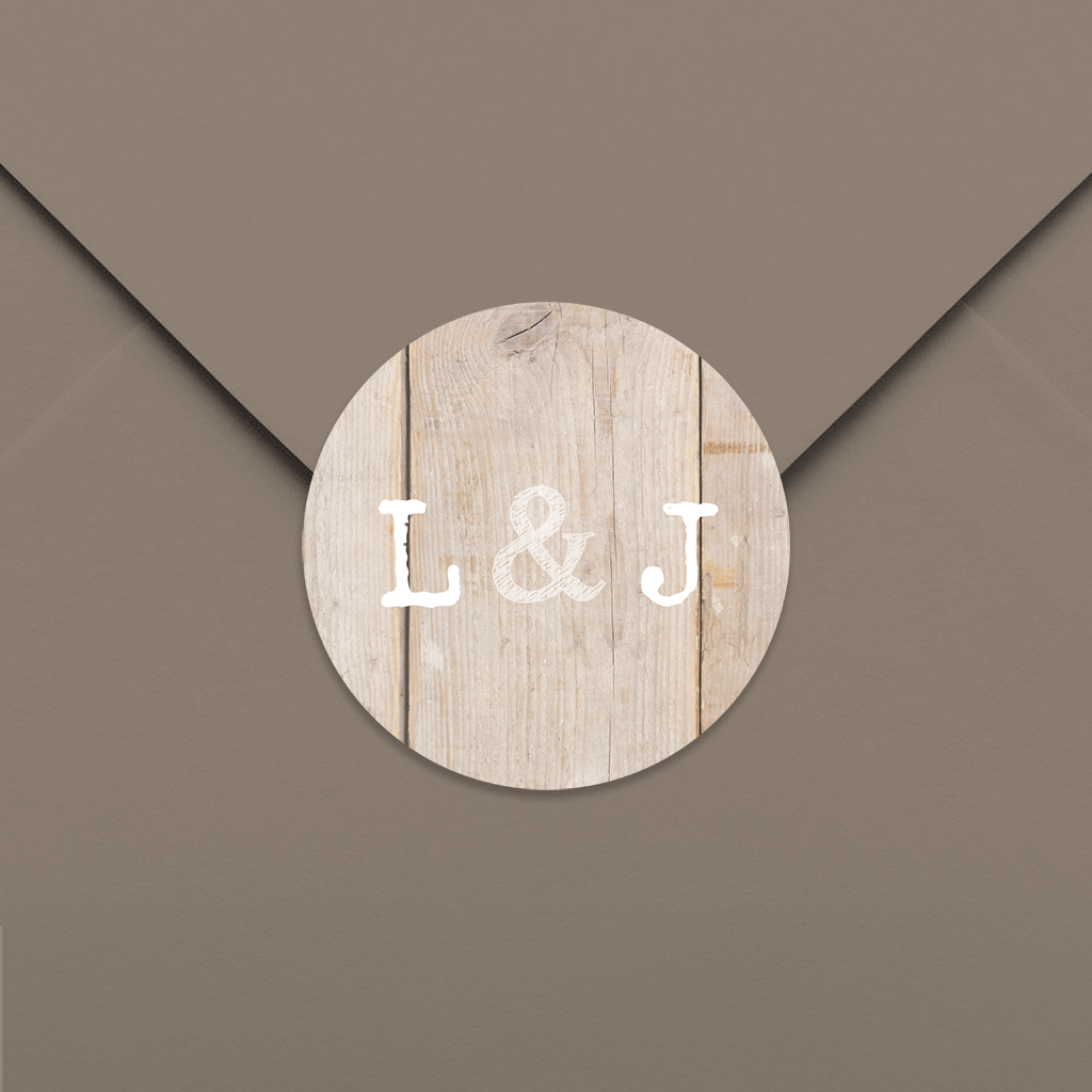Aufkleber mit Initialen und Hintergrund in Holzoptik 35mm 25 Stück