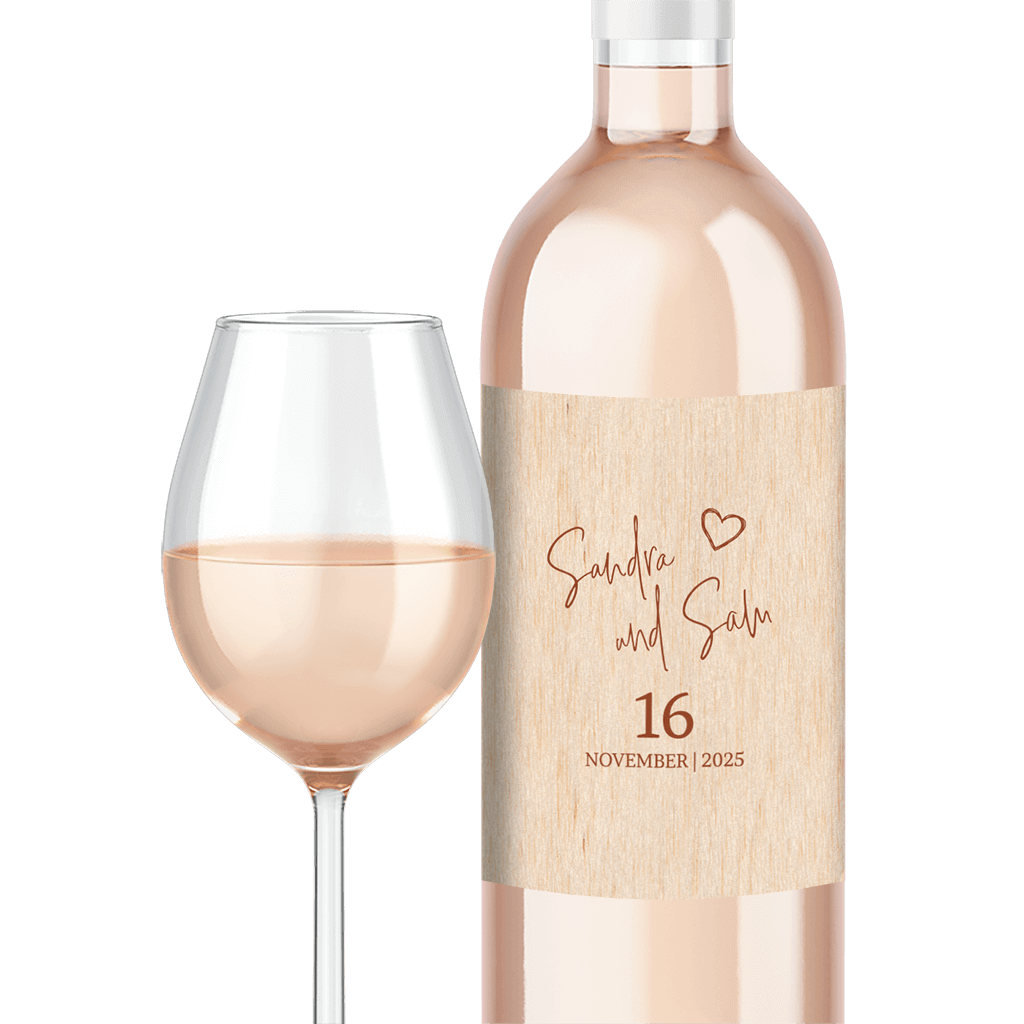 Langweilige Geschenke nerven dich und du hast keine Lust, wieder einfach nur Wein, Sekt oder Bier zu verschenken? Möchtet ihr personalisierte Flaschen auf eurer Hochzeit? Flaschenetiketten selbst gestalten und eine personalisierte Flasche verschenken ist eine viel bessere Geschenkidee! Entwirf deine Etiketten selbst und überrasche deine Freunde und Familie mit ganz persönlichen Wein-, Sekt- oder Bierflaschen! Ob zum Geburtstag, Jubiläum, Abschied oder einfach nur so - sowas kommt immer gut an! Flaschenetikett mit brauner Schrift. Du erhältst einen Bogen mit fünf Flaschenetiketten in deinem Design, Format 80x110mm.