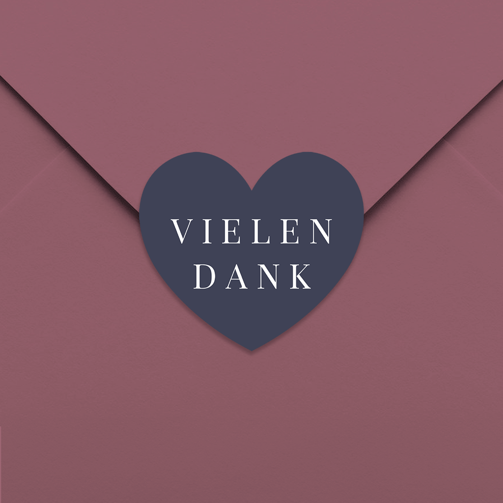 Dankes-Aufkleber Herz blau minimalisic Herz 35x31mm 30 Stück