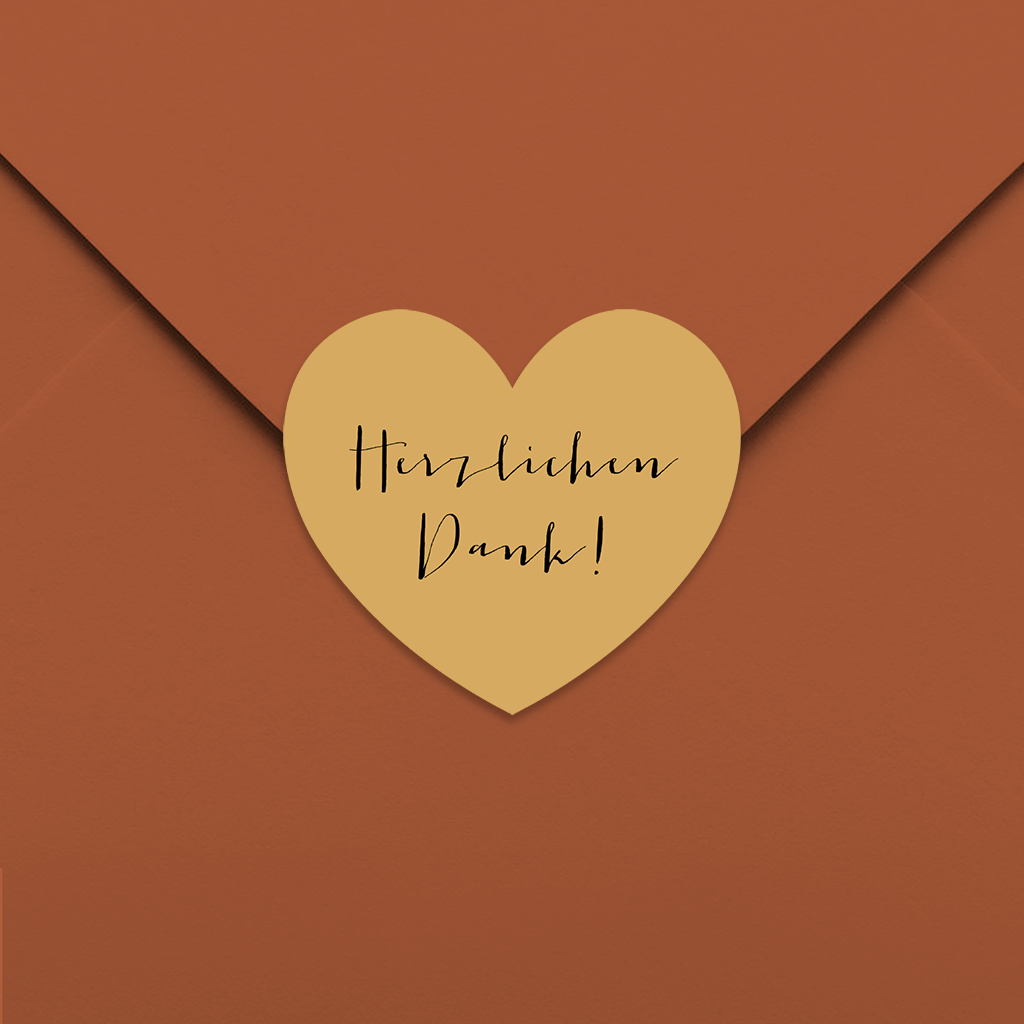 Dankes-Aufkleber Herz Gelb 35x31mm 30 Stück