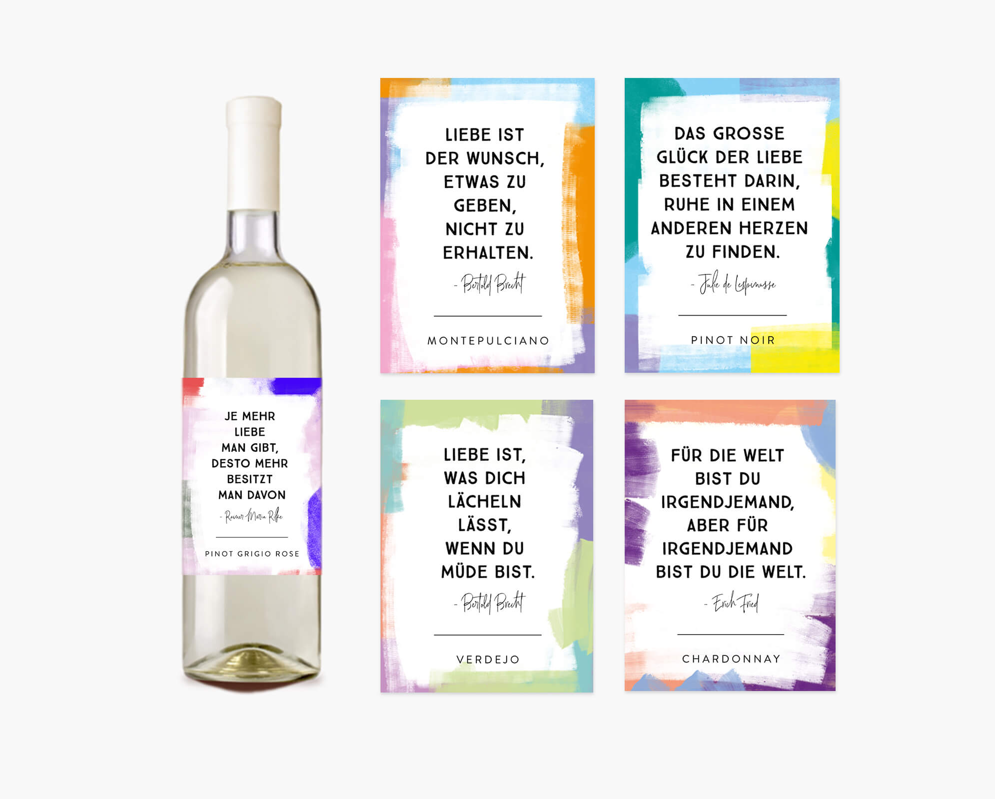 Was für ein originelles Geschenk für eine Hochzeit! 5 einzigartige Weinetiketten für 5 Meilensteine des Brautpaares.