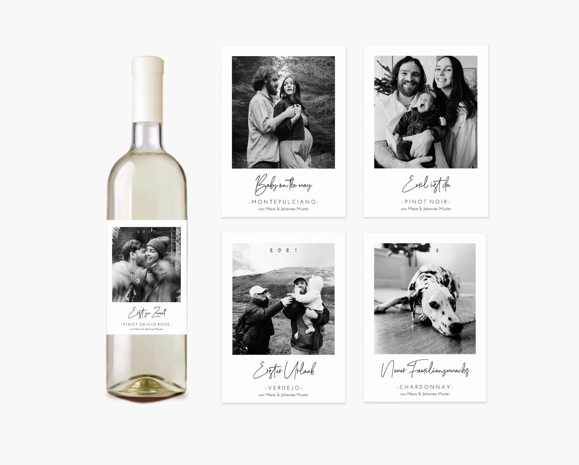 Was für ein originelles Geschenk für eine Hochzeit! 5 einzigartige Weinetiketten für 5 Meilensteine des Brautpaares.