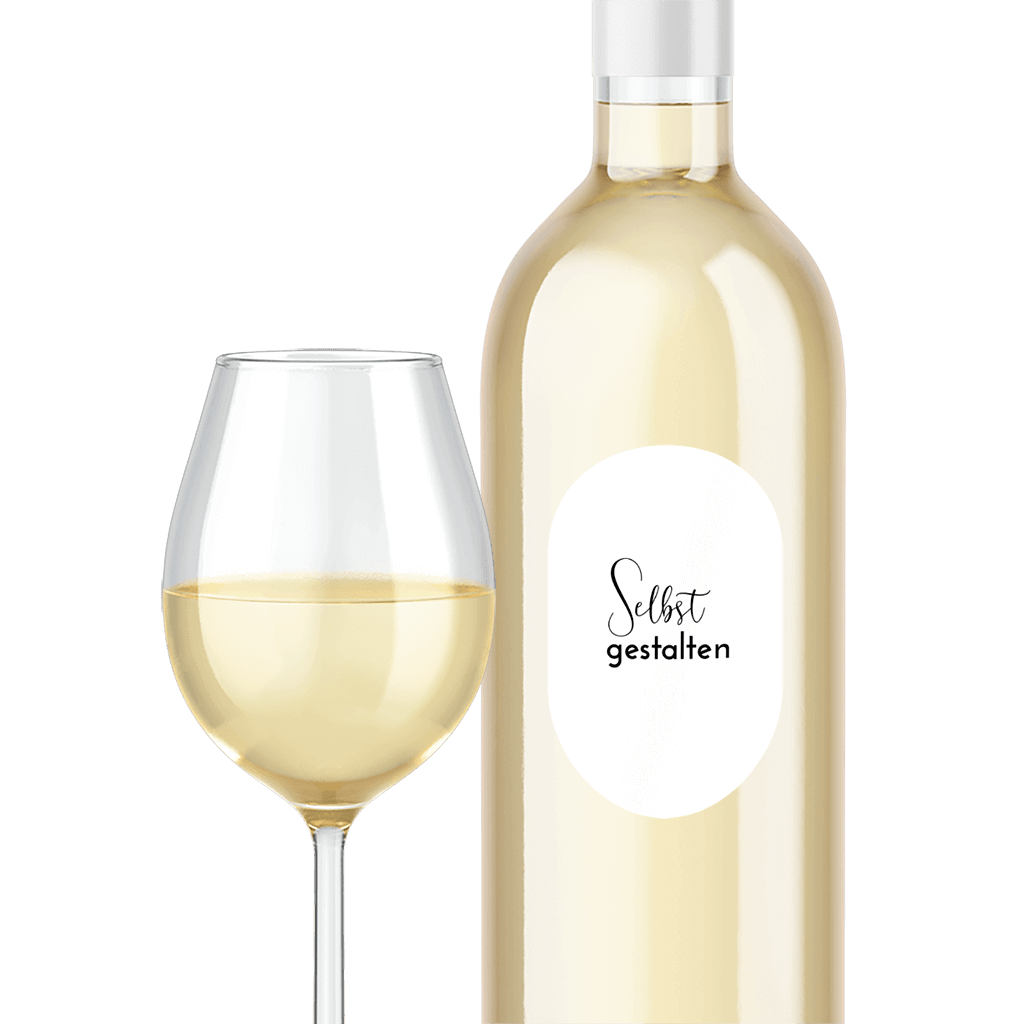 Flaschenetikett Oval. Du erhältst einen Bogen mit fünf Flaschenetiketten in deinem Design, Format 70x110mm.
