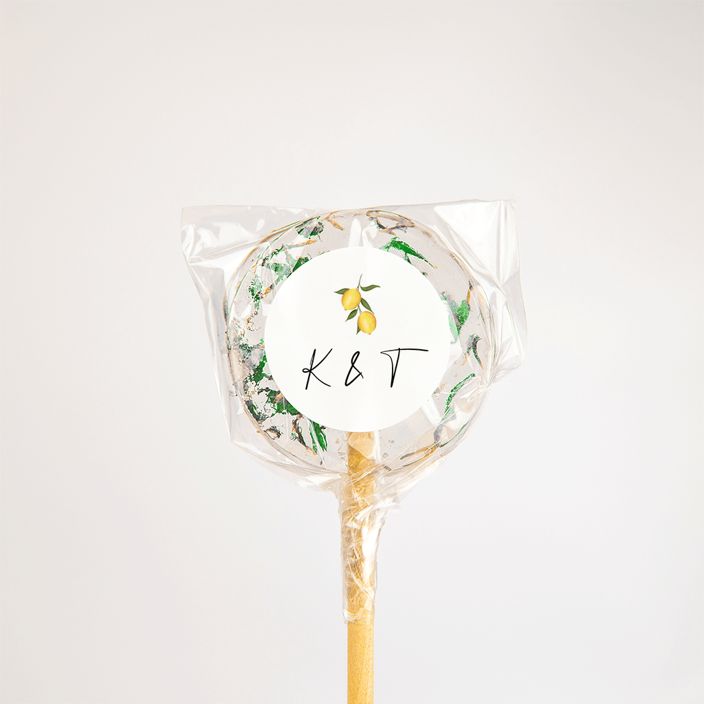 Gastgeschenkaufkleber mit Zitronen und Initialen