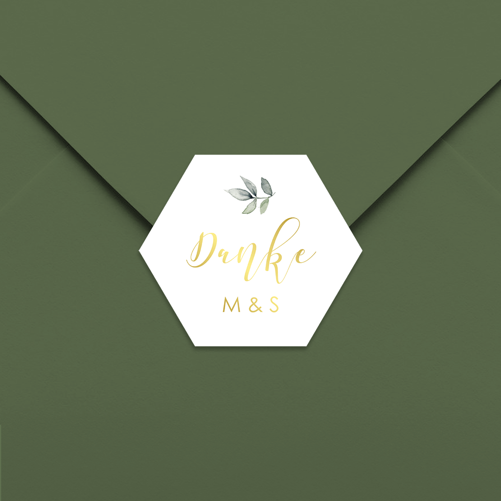 Geschenkaufkleber Hexagon mit grünen Zweigen 35x30mm 30 Stück