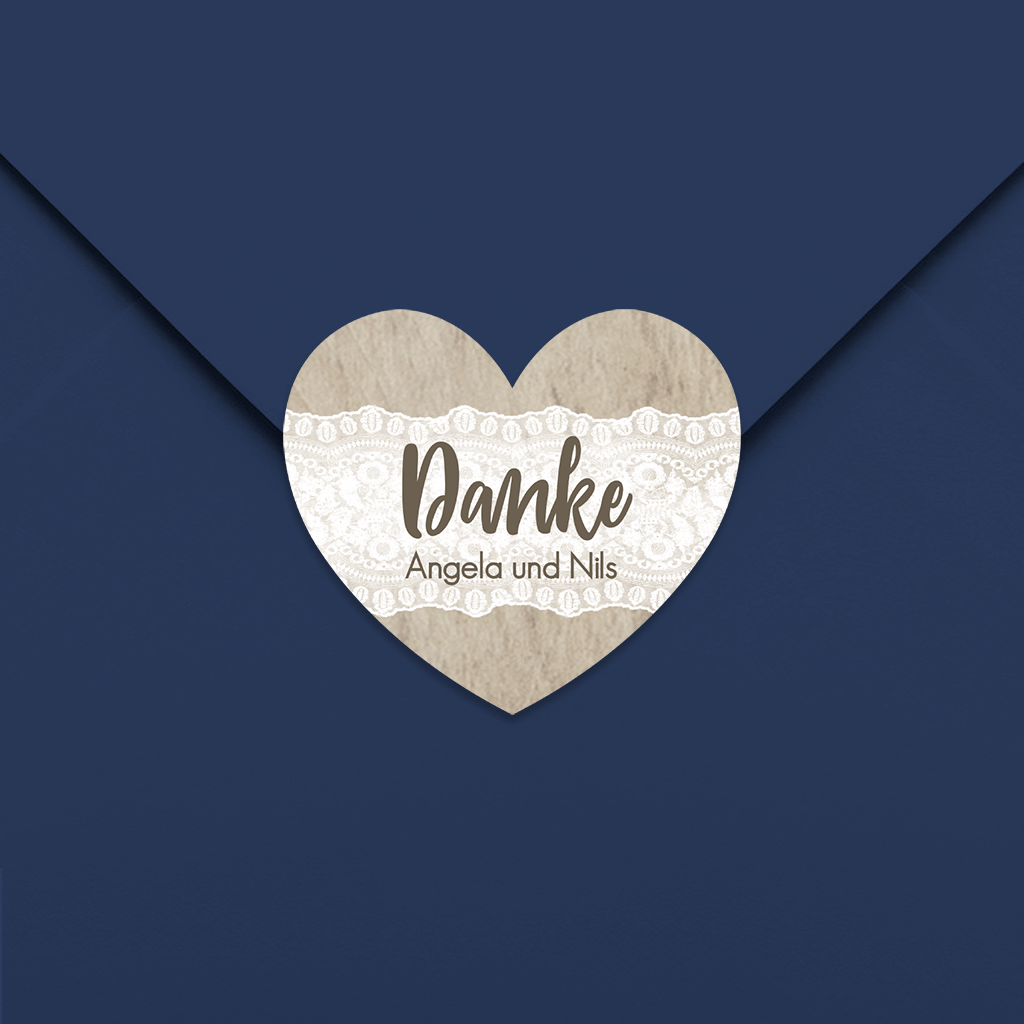 Geschenkaufkleber mit Spitze und Holz-Look Herz 35x31mm 30 Stück