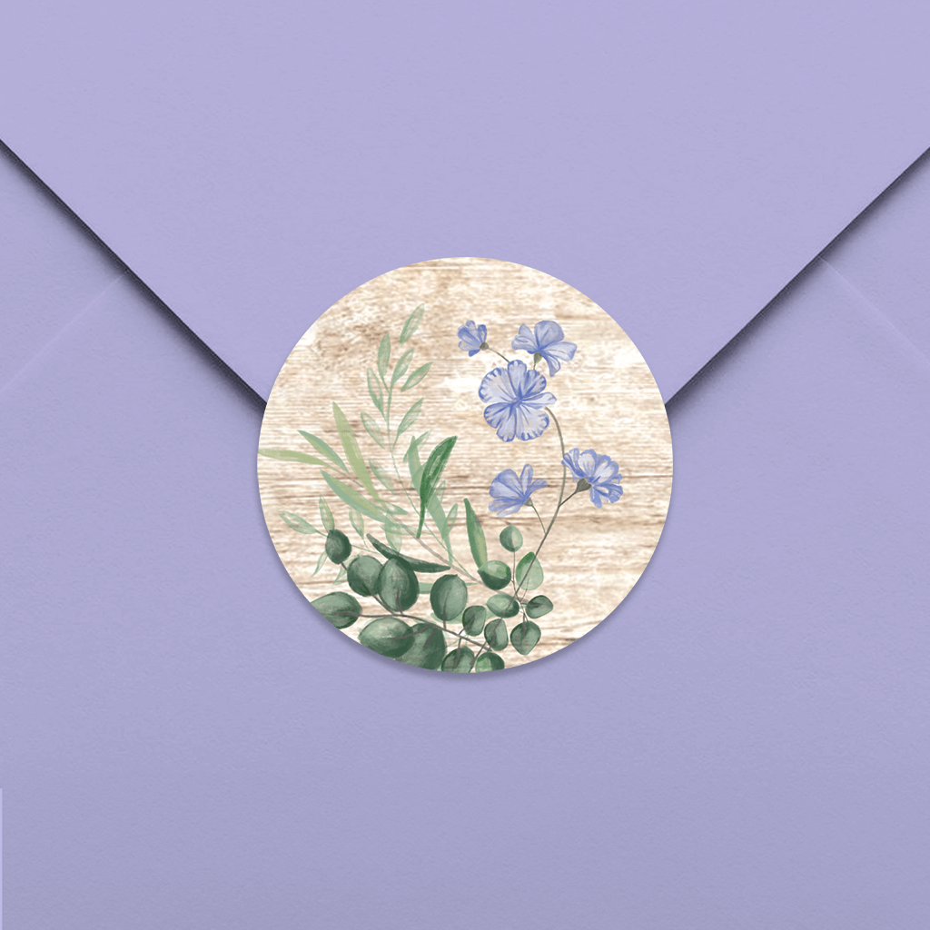 Ein hübsches Siegel mit einem holzstrukturierten Hintergrund und einer Illustration mit gemalten blauen Blumen. Diameter 44mm, 20 Stück.Melde dich für unseren Newsletter an und entdecke exklusive Angebote, kreative Inspirationen und spannende Neuigkeiten aus unserer Produktwelt. Als Dankeschön erhältst du 5 € Rabatt auf deine nächste Bestellung.