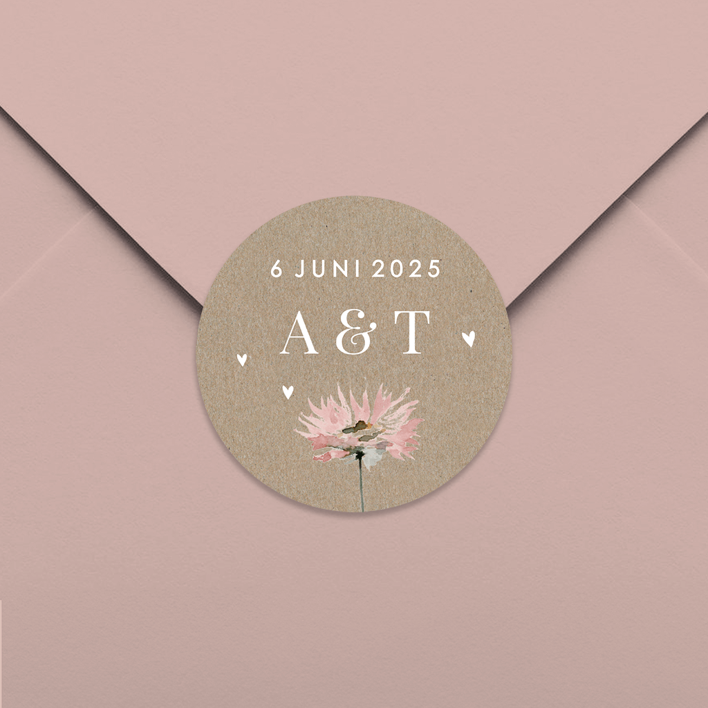 Kraftpapier-look Aufkleber mit Blume 35mm ø 25 Stück