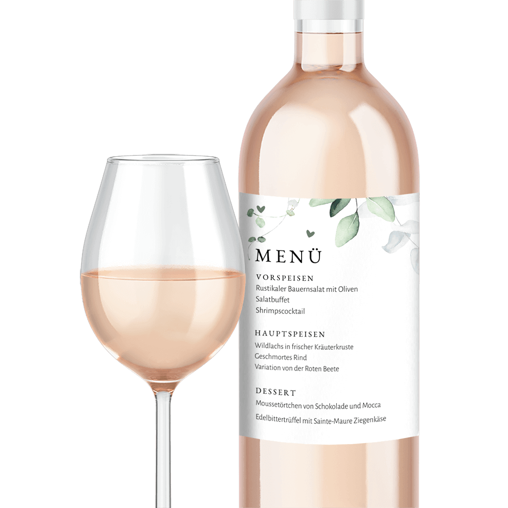 Menü Aufkleber Aquarellzweigen, du erhältst einen Bogen mit vier Flaschenetiketten in deinem Design, Format 90 x 120 mm.Melde dich für unseren Newsletter an und profitiere von exklusiven Angeboten, kreativen Ideen und Neuigkeiten aus unserer Produktwelt. Als Dankeschön für deine Anmeldung schenken wir dir einen kostenlosen Probedruck deiner Karte.