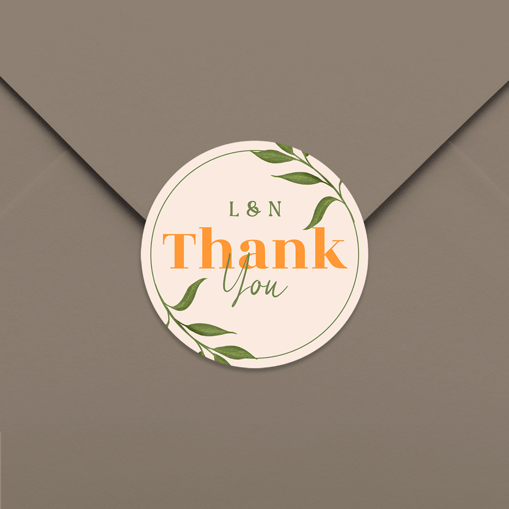 Runder Geschenkaufkleber mit Blätterrahmen auf orangenem Hintergrund - 25 Stück ø 35 mm.Melde dich für unseren Newsletter an und entdecke exklusive Angebote, kreative Inspirationen und spannende Neuigkeiten aus unserer Produktwelt. Als Dankeschön erhältst du 5 € Rabatt auf deine nächste Bestellung.