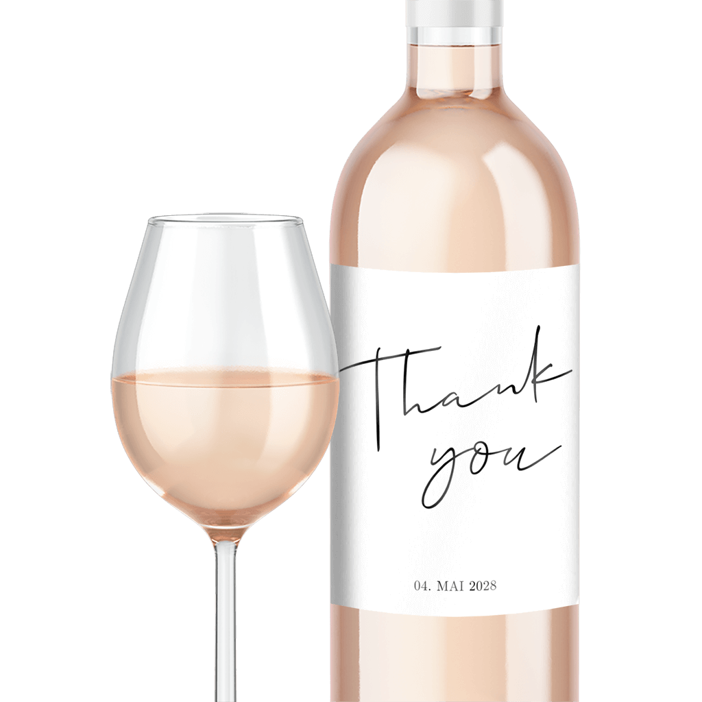 Möchtet ihr personalisierte Flaschen auf eurer Hochzeit? Flaschenetiketten selbst gestalten und eine personalisierte Flasche verschenken ist eine viel bessere Geschenkidee! Entwirf deine Etiketten selbst und überrasche deine Hochzeitsgäste mit ganz persönlichen Wein-, Sekt- oder Bierflaschen! Du erhältst einen Bogen mit fünf Flaschenetiketten in deinem Design, Format 80x110mm.Melde dich für unseren Newsletter an und entdecke exklusive Angebote, kreative Inspirationen und spannende Neuigkeiten aus unserer Produktwelt. Als Dankeschön erhältst du 5 € Rabatt auf deine nächste Bestellung.