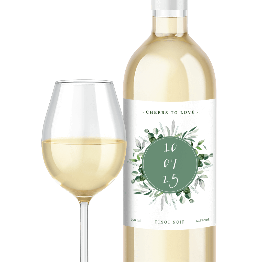 Schönes Flaschenetikett mit Eukalyptus. Du erhältst einen Bogen mit fünf Flaschenetiketten in deinem Design, Format 80x110mm. Langweilige Geschenke nerven dich und du hast keine Lust, wieder einfach nur Wein, Sekt oder Bier zu verschenken? Möchtet ihr personalisierte Flaschen auf eurer Hochzeit? Flaschenetiketten selbst gestalten und eine personalisierte Flasche verschenken ist eine viel bessere Geschenkidee! Entwirf deine Etiketten selbst und überrasche deine Freunde und Familie mit ganz persönlichen Wein-, Sekt- oder Bierflaschen! Ob zum Geburtstag, Jubiläum, Abschied oder einfach nur so - sowas kommt immer gut an!Melde dich für unseren Newsletter an und entdecke exklusive Angebote, kreative Inspirationen und spannende Neuigkeiten aus unserer Produktwelt. Als Dankeschön erhältst du 5 € Rabatt auf deine nächste Bestellung.