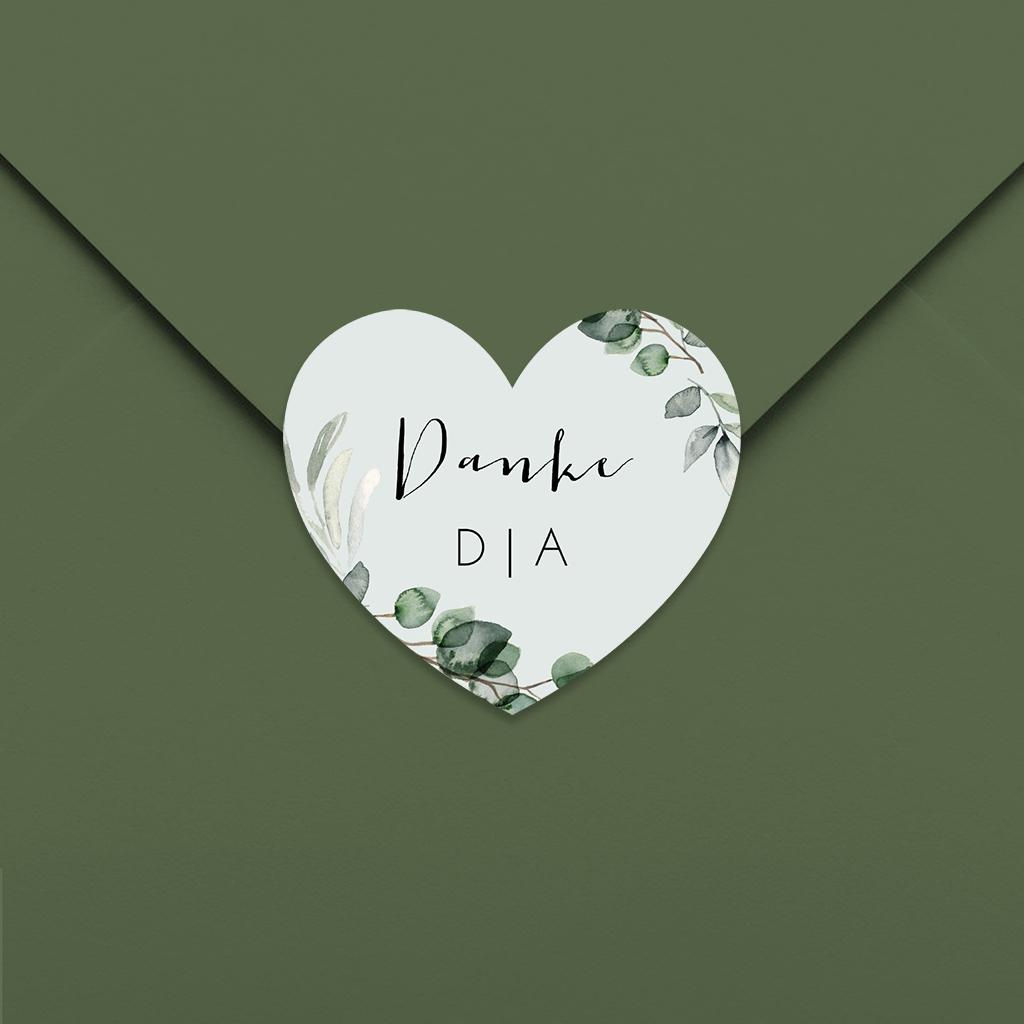 Schöne Geschenkaufkleber Herz Eukalyptus 35x31mm 30 Stück