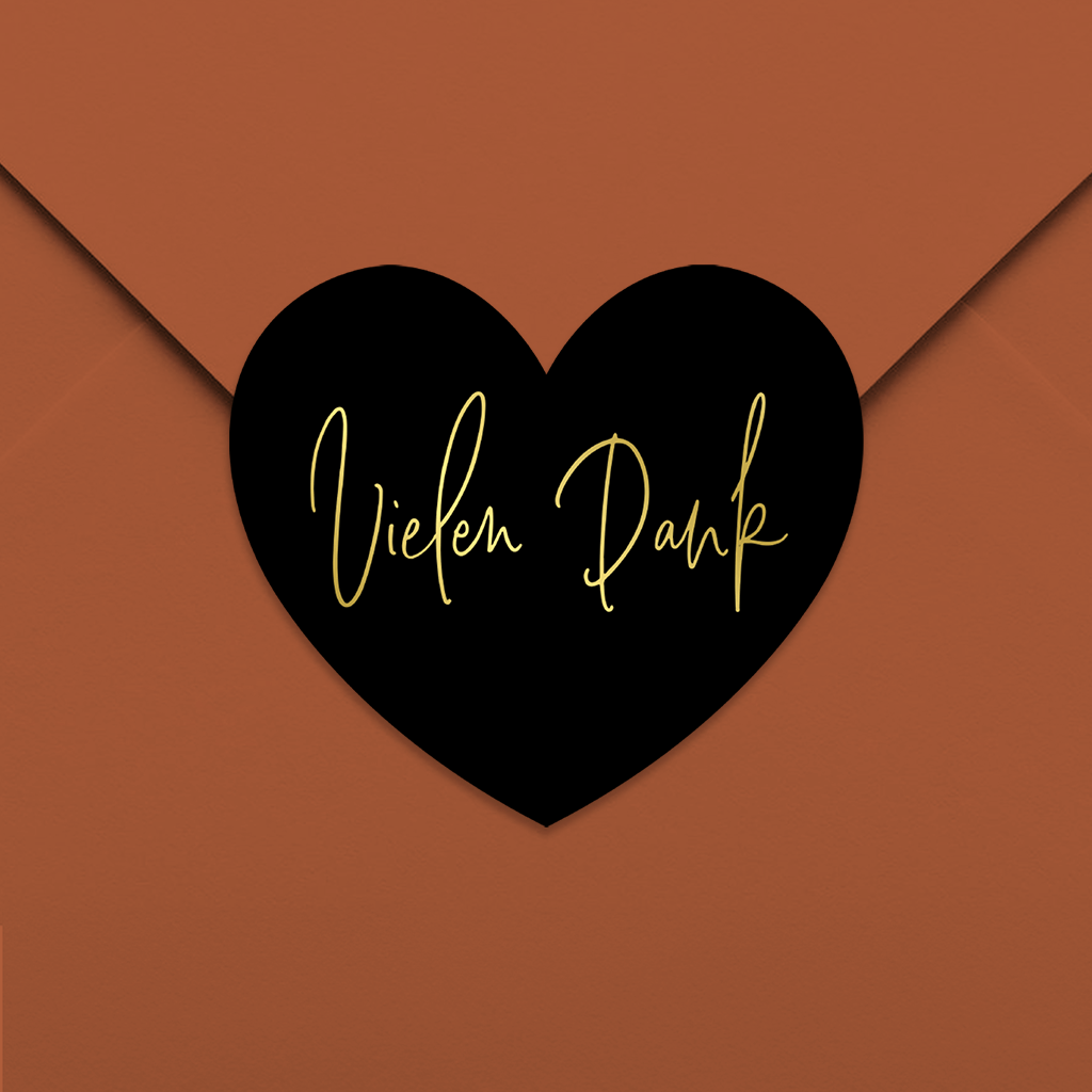 Schwarz Herz Goldfolie Dankes-Aufkleber 35x31mm 30 Stück