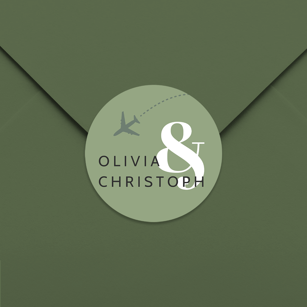 Sticker mit grünem Hintergrund und Flugzeug passend zum Ticket-Look ø 35mm - 25 Stück35 mm
