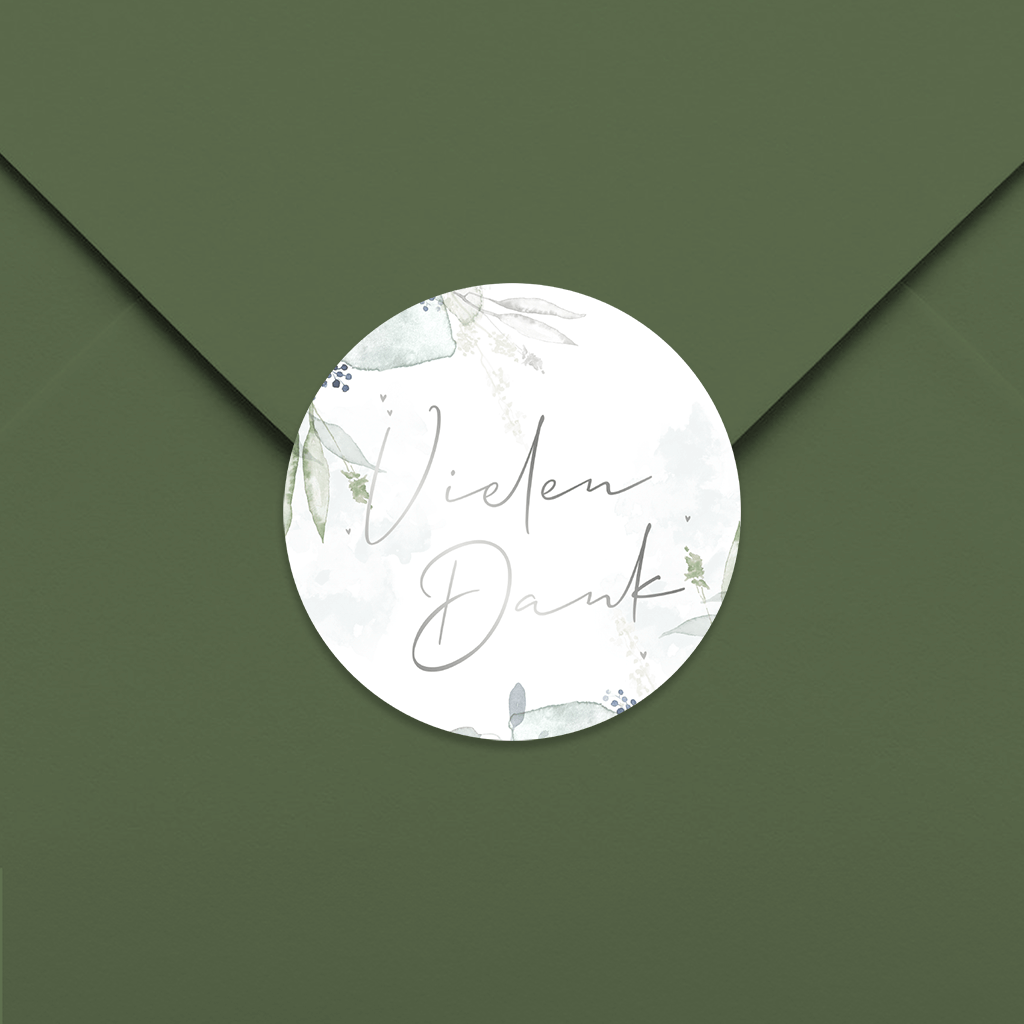 Stilvolle Dankes-Aufkleber mit Aquarellzweigen