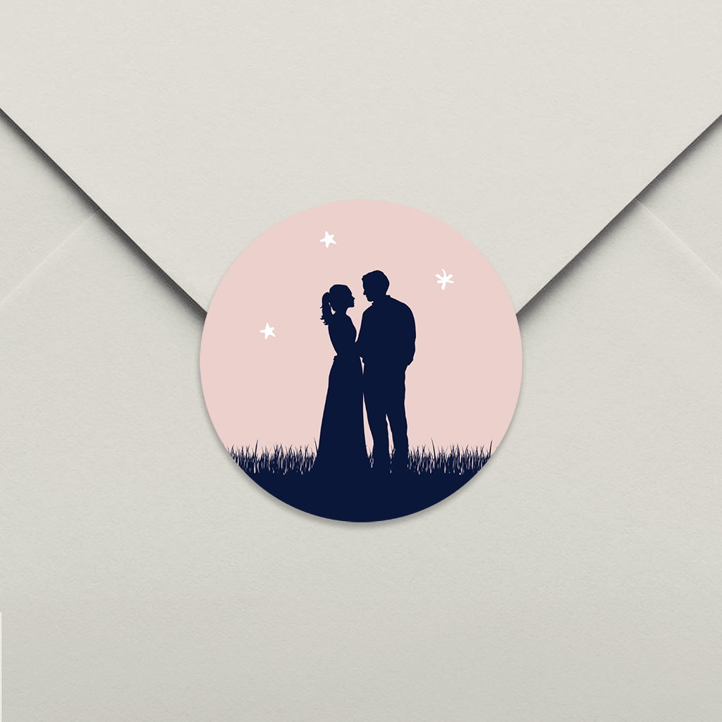 Verschlussaufkleber Briefumschläge mit Silhouette von einem Brautpaar