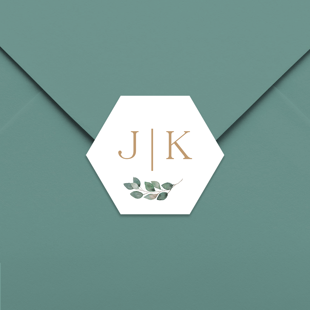 Verschlussaufkleber für Briefumschläge mit Initialen des Brautpaars und Eukalyptus Zweig