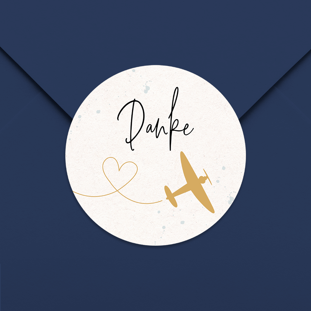 Verschlusssiegel "Danke" in Herzform fliegenden Flugzeug in Gold