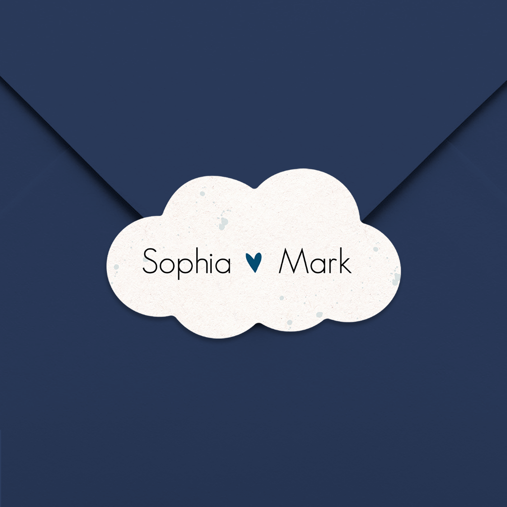 Verschlusssiegel in Wolkenform in weiß mit blauem Herz