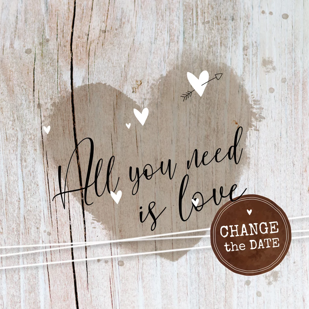 Schöne Change the Date Karte in Holzoptik mit Herzen