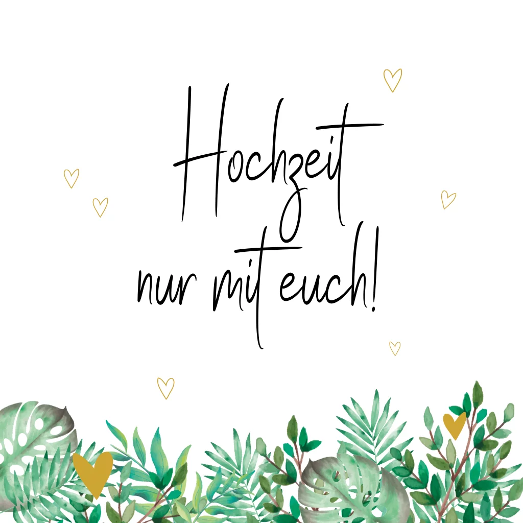 Florale Change the Date Karte mit Blättern und goldgelben Herzen