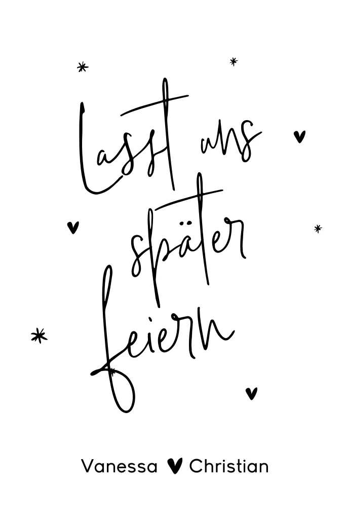 Eure Hochzeit müsst ihr verschieben? Kein Problem. Habt ihr schon ein neues Datum, dann schreibt dieses, den Ort sowie die Uhrzeit mit auf die Change the Date Karte. So wissen all eure Gäste Bescheid und ihr müsst nicht aufwändig alle Gäste einzeln anrufen.