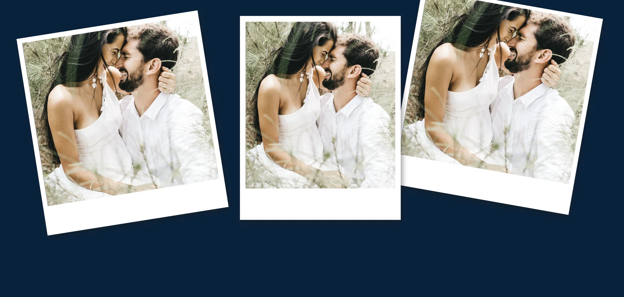 Blaue Hochzeit Dankeskarte mit Fotos im Polaroidstil