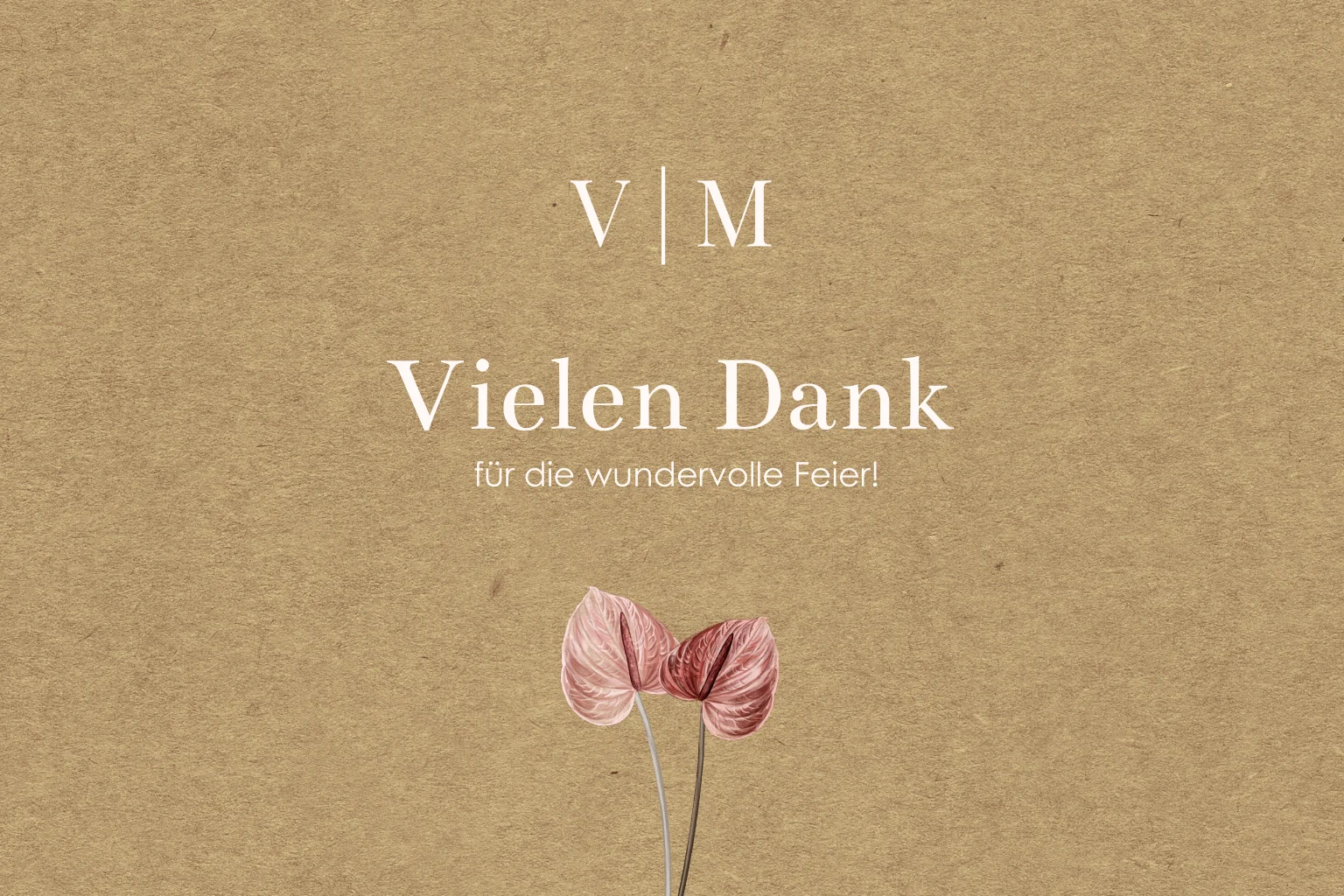 Bohemian Dankeskarte mit bronzefarbenen Blättern in Kraftpapier-Look