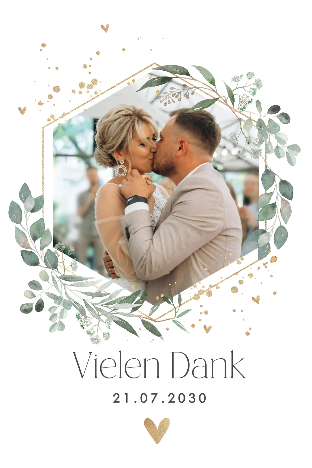 Botanische magnetische Dankeskarte zur Hochzeit mit Foto und Herzen