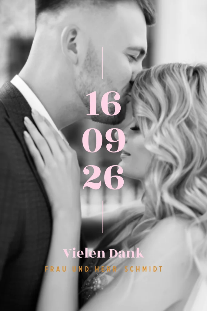 Colourblocking Dankeskarte Hochzeit mit zentriertem Datum