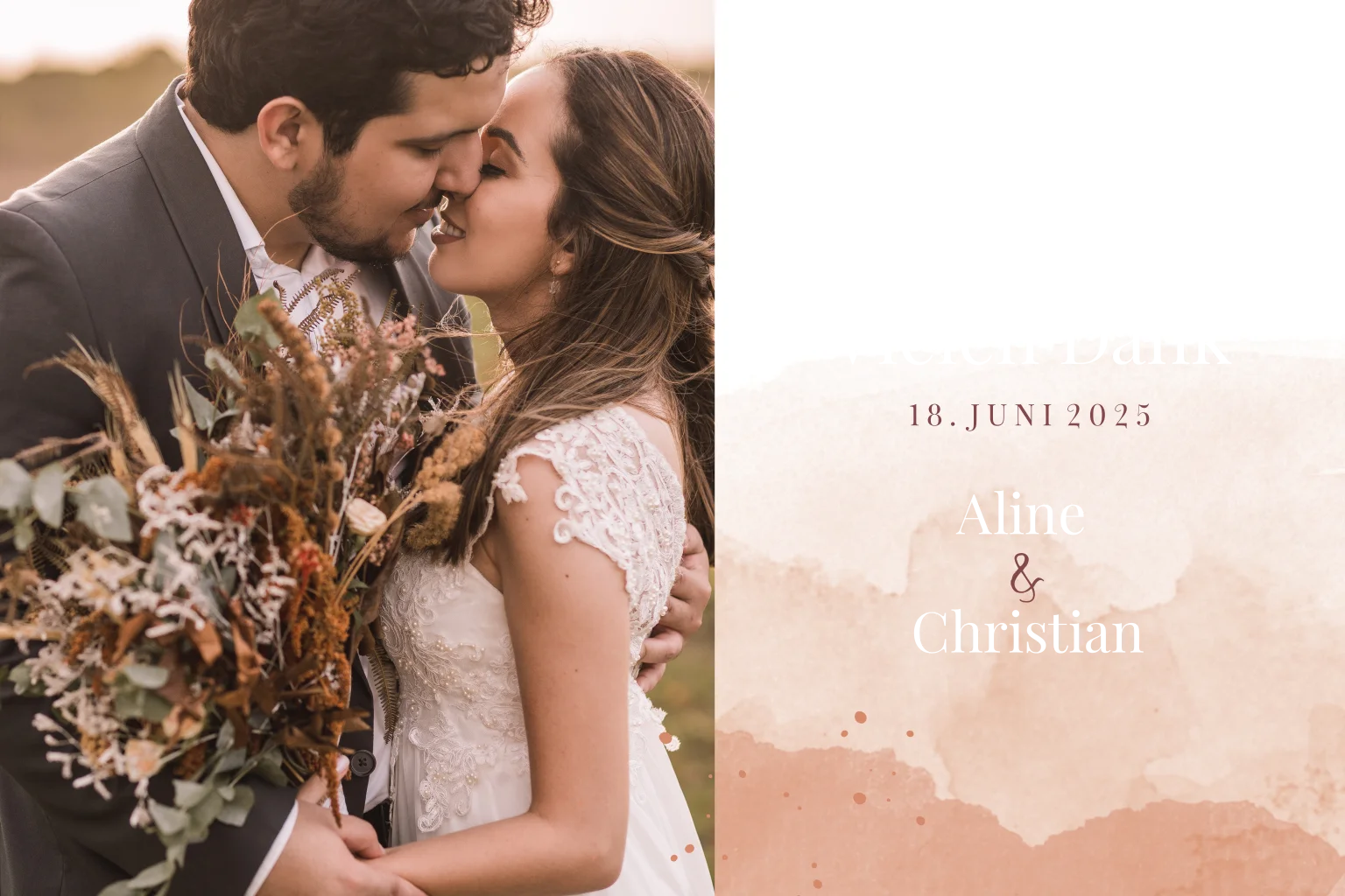 Einfache aber sehr stilvolle Moderne Danksagungskarte mit Aquarellhintergrund und schickem Foliendruck.Melde dich für unseren Newsletter an und profitiere von exklusiven Angeboten, kreativen Ideen und Neuigkeiten aus unserer Produktwelt. Als Dankeschön für deine Anmeldung schenken wir dir einen kostenlosen Probedruck deiner Karte.