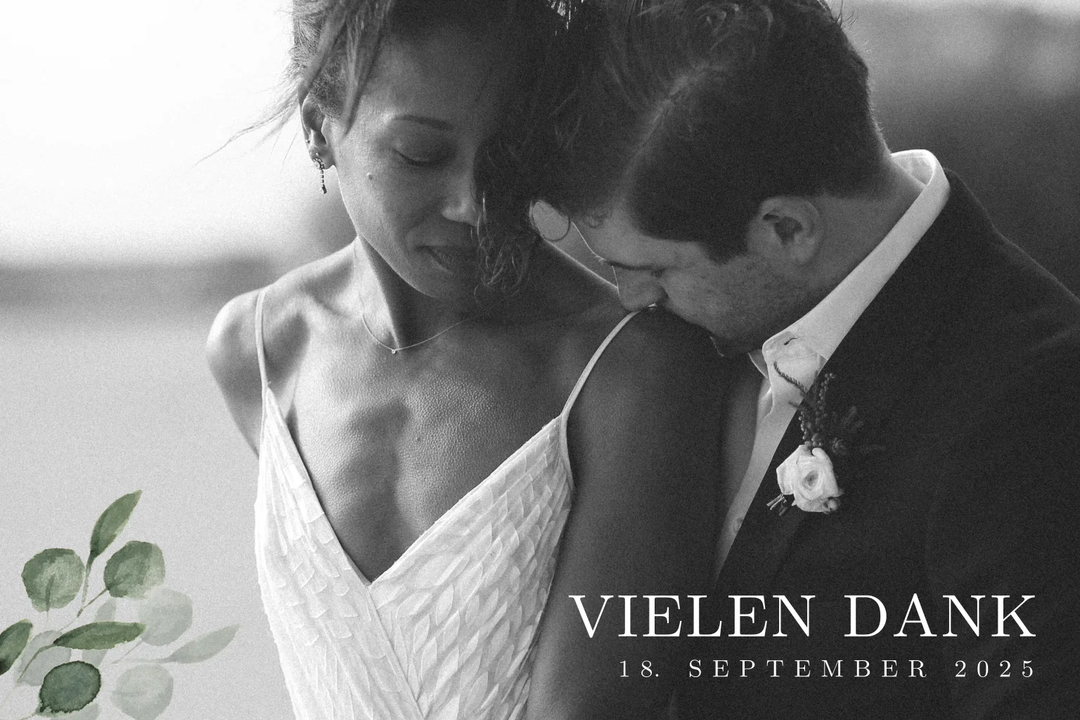 Dankeskarte mit grossem Foto und Eukalyptuszweigen