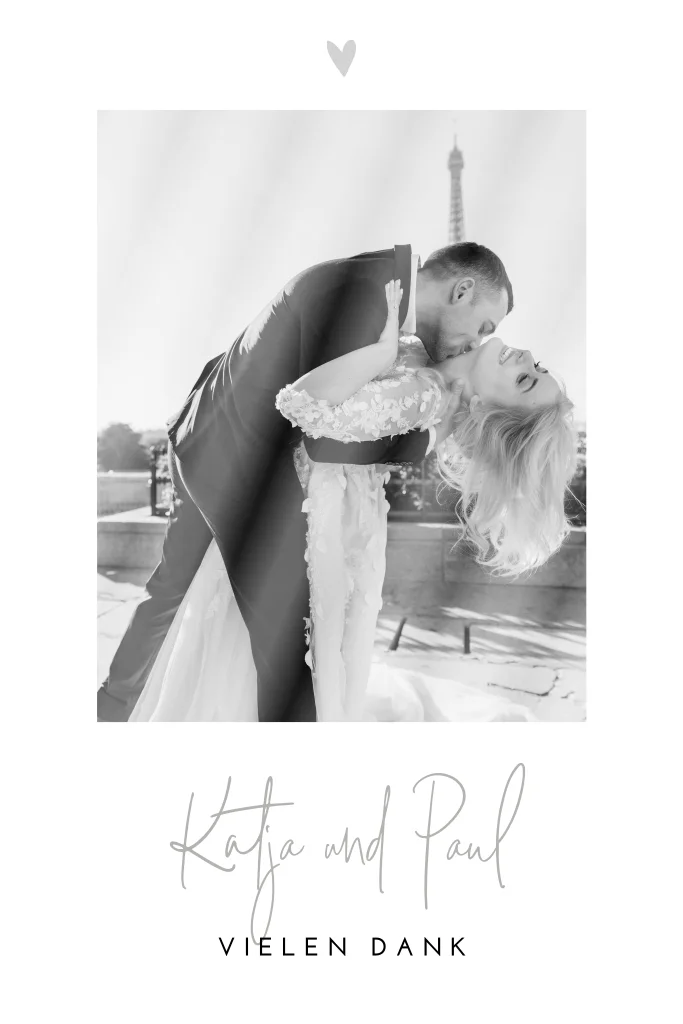 Diese Danksagungskarte mit Hochglanzfoto und hellgrauen Details ist perfekt, um deinen Gästen für die Teilnahme an diesem besonderen Tag zu danken!