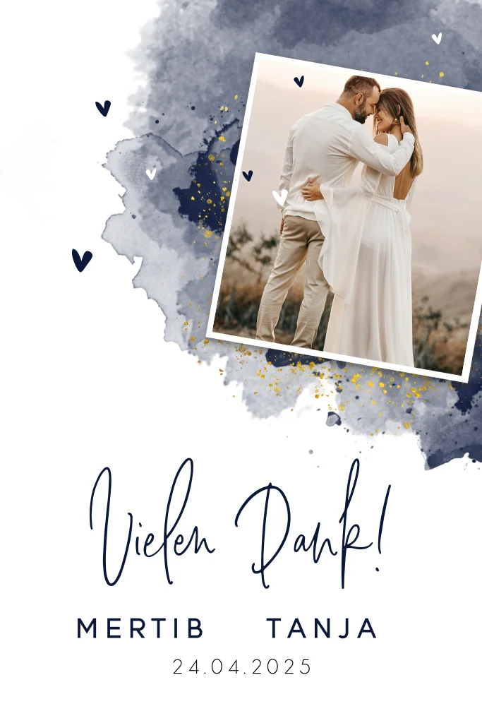 Dankeskarte Hochzeit mit eleganter Goldfolie