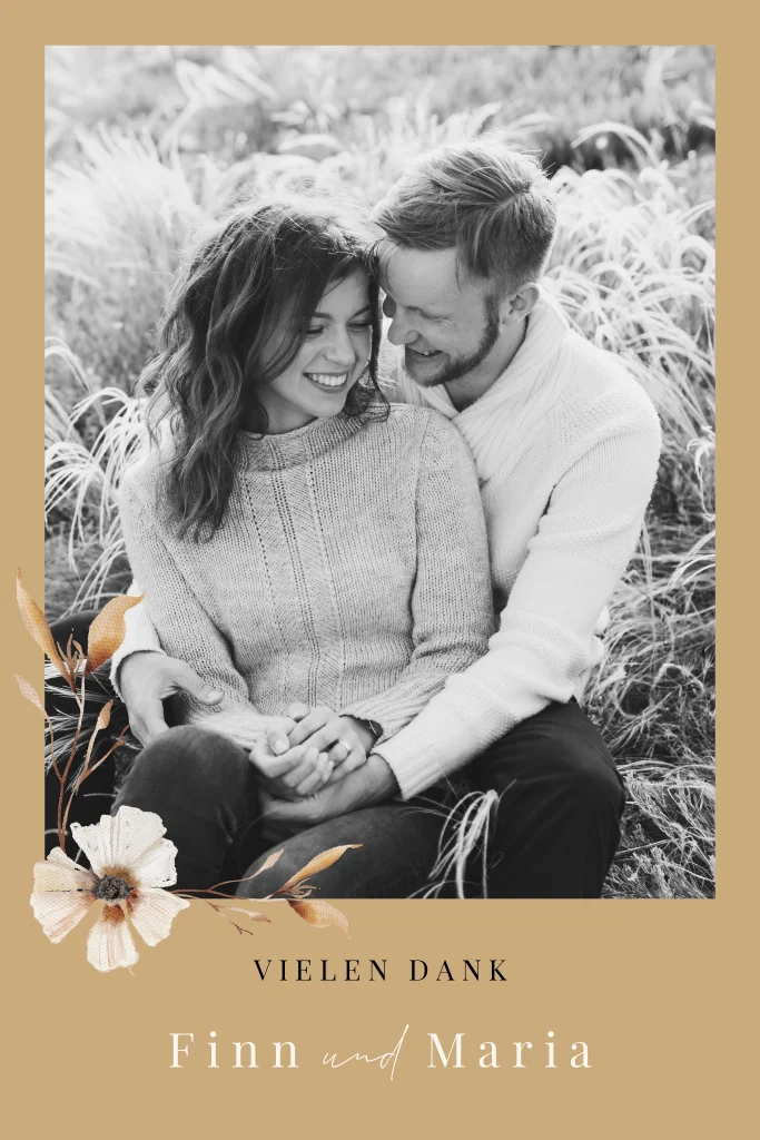 Dankeskarte zur Hochzeit mit Foto und Veilchen