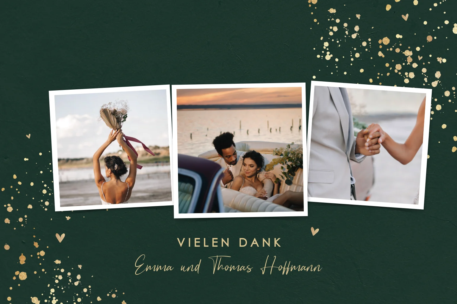 Dankeskarte Hochzeit in grün mit goldenen Tupfern