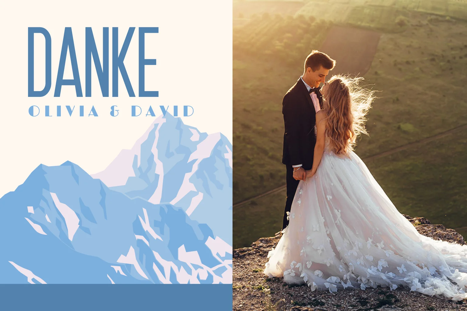 Dankeskarte im Retro Filmplakat Look mit Bergmotiv und FotoMelde dich für unseren Newsletter an und profitiere von exklusiven Angeboten, kreativen Ideen und Neuigkeiten aus unserer Produktwelt. Als Dankeschön für deine Anmeldung schenken wir dir einen kostenlosen Probedruck deiner Karte.