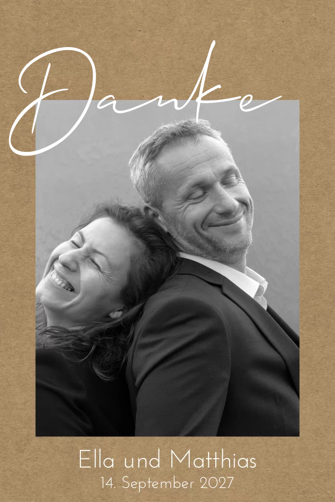 Danksagung Silberne Hochzeit im Kraft-Look mit großem Foto