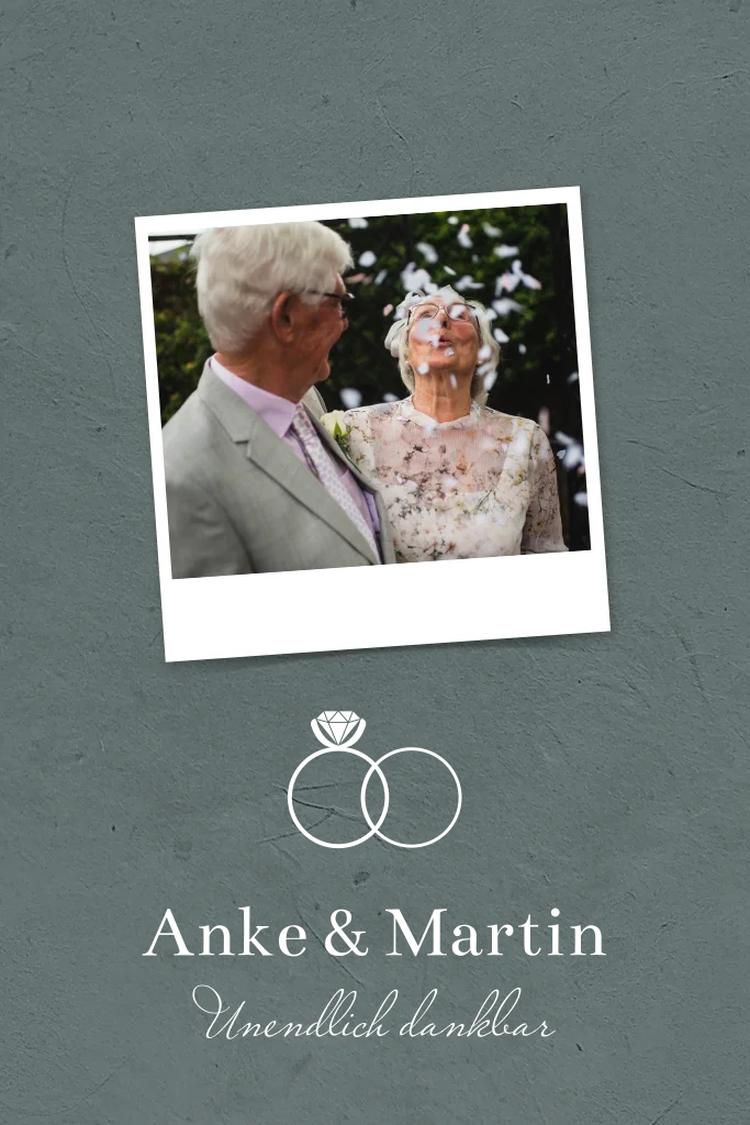 Danksagungskarte zur goldenen Hochzeit mit Foto und Ringen