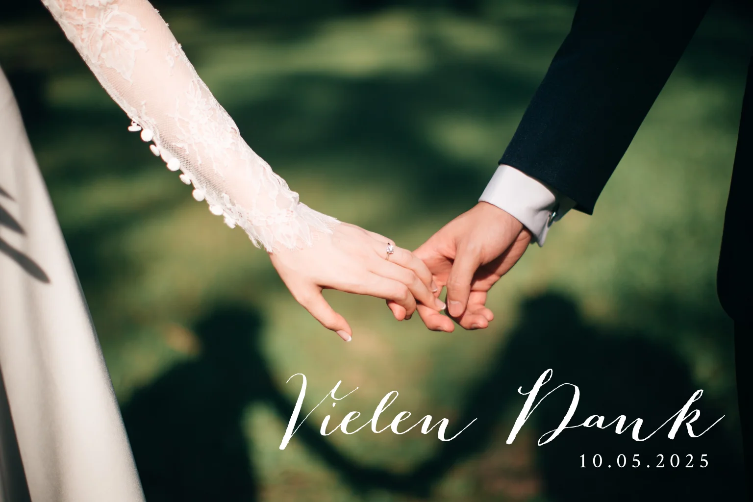 Dezente Hochzeitsdanksagung in Grün mit Foto