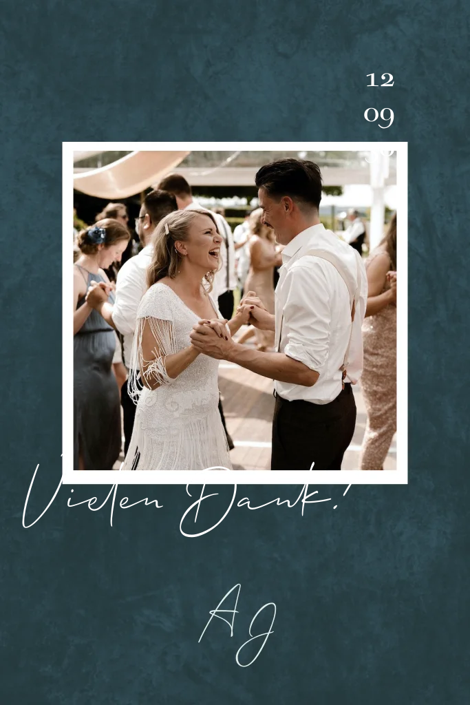 Hochzeitsdanksagungskarten sollten am besten 2-8 Wochen nach der Hochzeit verschickt werden. Dann hattet ihr bereits Zeit, alle Geschenke auszupacken und euren Gästen persönlich zu danken – außerdem könnt ihr eure Danksagungen mit den schönsten Fotos der Trauung und der Feier gestalten. Fotografie: Marleen Memories FotografieDas Design der von dir gewählten Karte wurde automatisch in andere Formate umgestellt. Wähle einfach deinen Wunschformat aus und platziere alle Texte und Elemente an der richtigen Stelle im Editor. Du hast Fragen oder dein Favorit steht nicht zur Auswahl? Dann kontaktiere uns bitte und wir werden uns gemeinsam darum kümmern!