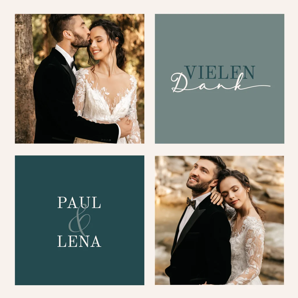 Bedankt euch bei euren Gästen für das möglich machen eines perfekten Tages. Mit euren schönsten Fotos eine tolle Erinnerung.Durch den Zuschnitt der Karten können 1-3mm Breitenunterschied (links/rechts und oben/unten) am Rahmen auftreten. Tipp: Gestalte den Rand so groß wie möglich, damit dieser mögliche Unterschied nicht auffällt.