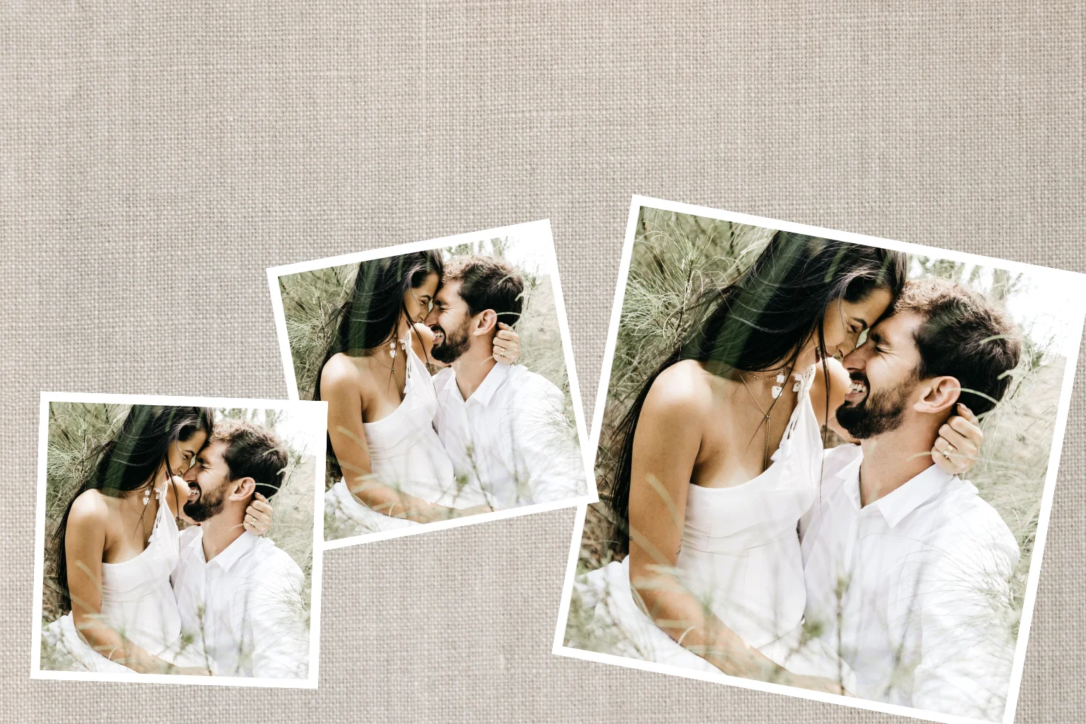 Hochzeit-Dankeskarte mit Fotos und Leinenlook