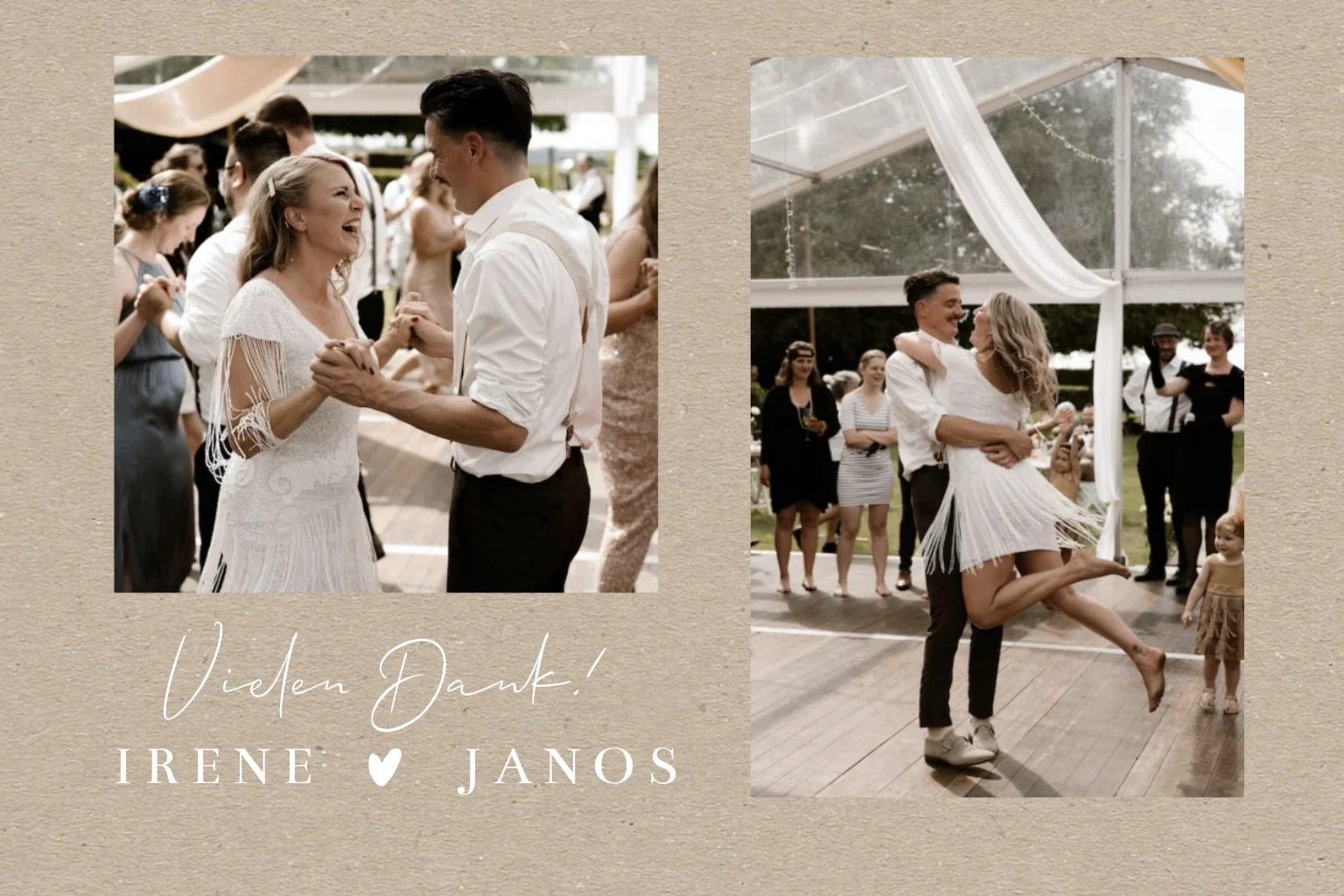 Bedankt euch bei euren Gästen für das möglich machen eines perfekten Tages. Mit eurem schönsten Foto eine tolle Erinnerung. Fotos: Memories by marleen fotografieDas Design der von dir gewählten Karte wurde automatisch in andere Formate umgestellt. Wähle einfach deinen Wunschformat aus und platziere alle Texte und Elemente an der richtigen Stelle im Editor. Du hast Fragen oder dein Favorit steht nicht zur Auswahl? Dann kontaktiere uns bitte und wir werden uns gemeinsam darum kümmern!