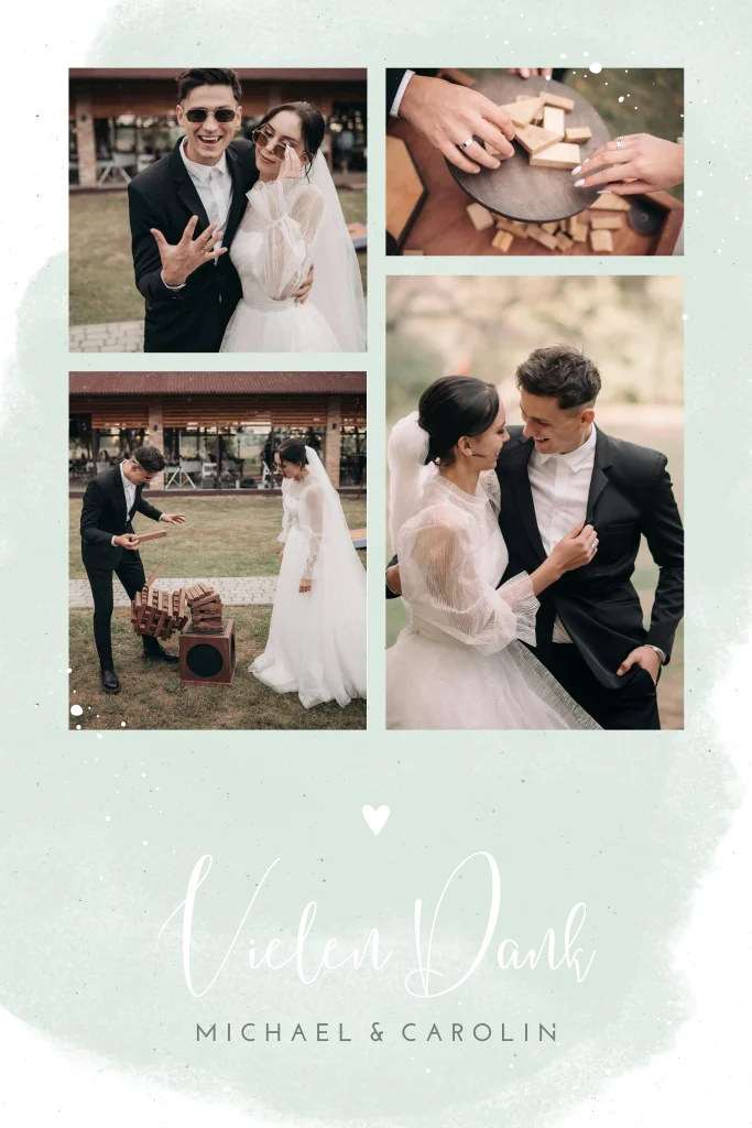 Dankeskarte Hochzeit in Salbei mit Fotocollage