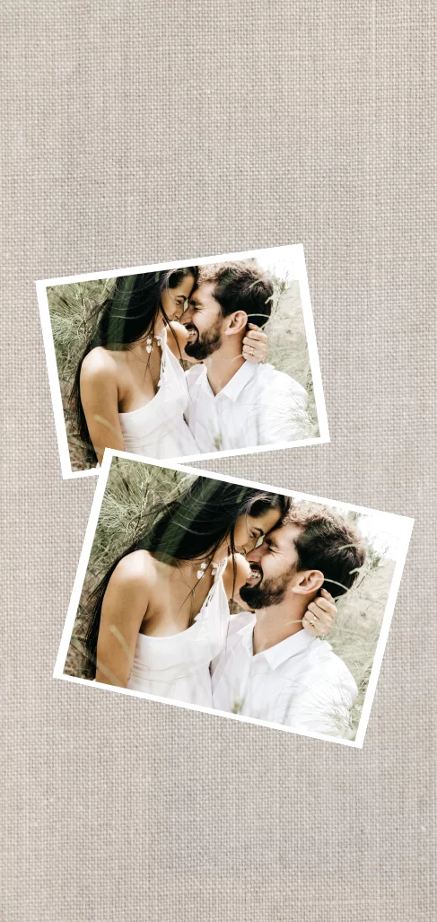 Leinen-Look Dankeskarte Hochzeit mit 2 Fotos