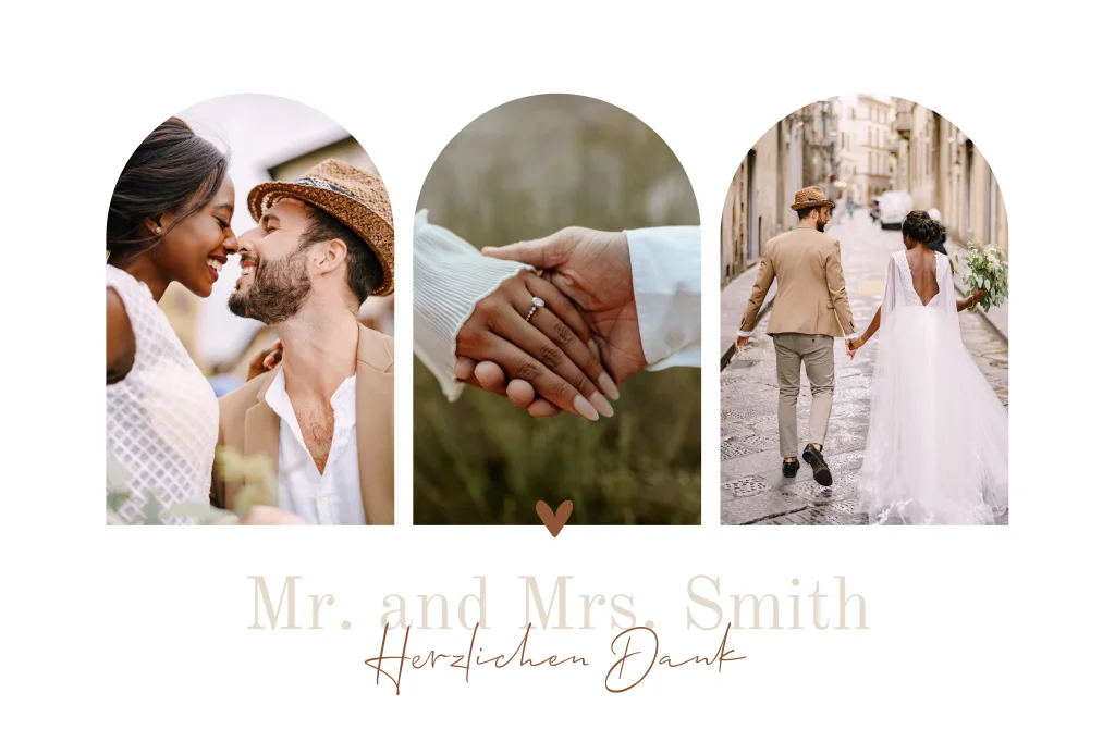 Magnetische Dankeskarte Hochzeit mit Fotos in Halbbogenform