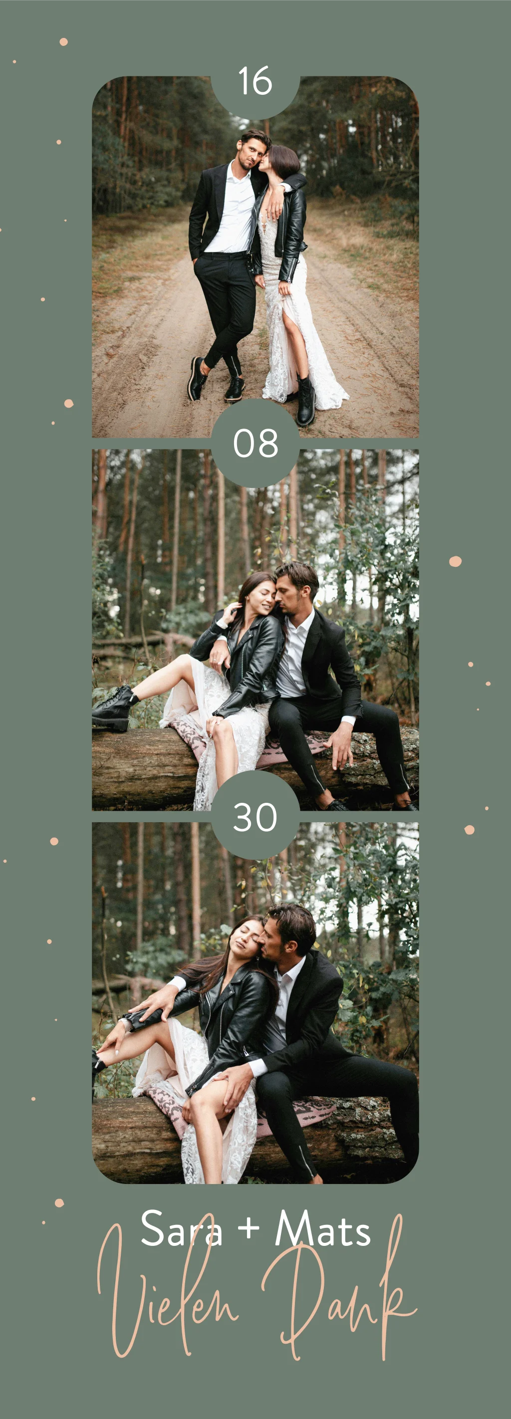 Magnetische Hochzeits-Dankeskarte im Fotostreifen-Look