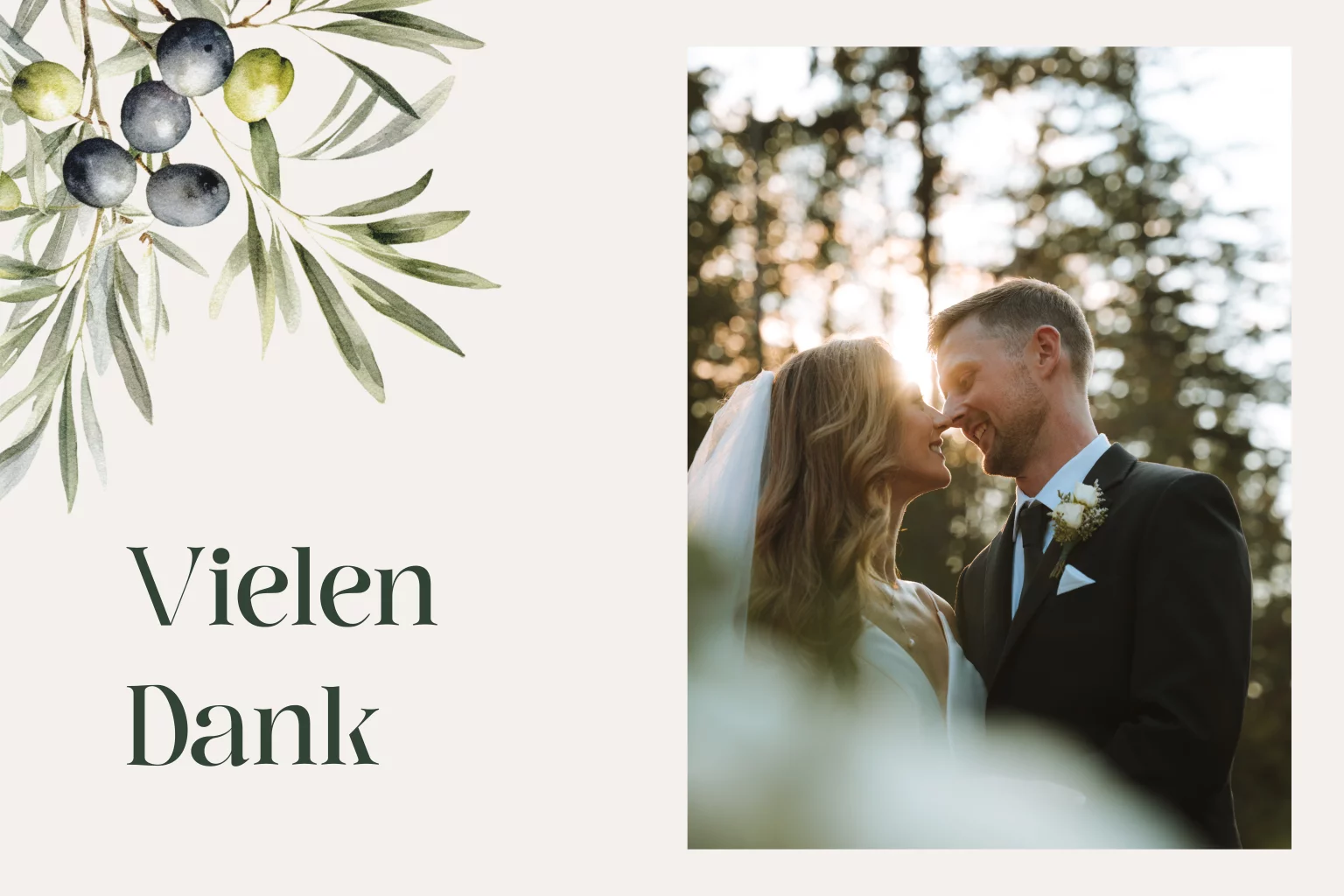 Mediterrane Dankeskarte mit Oliven und Zweigen